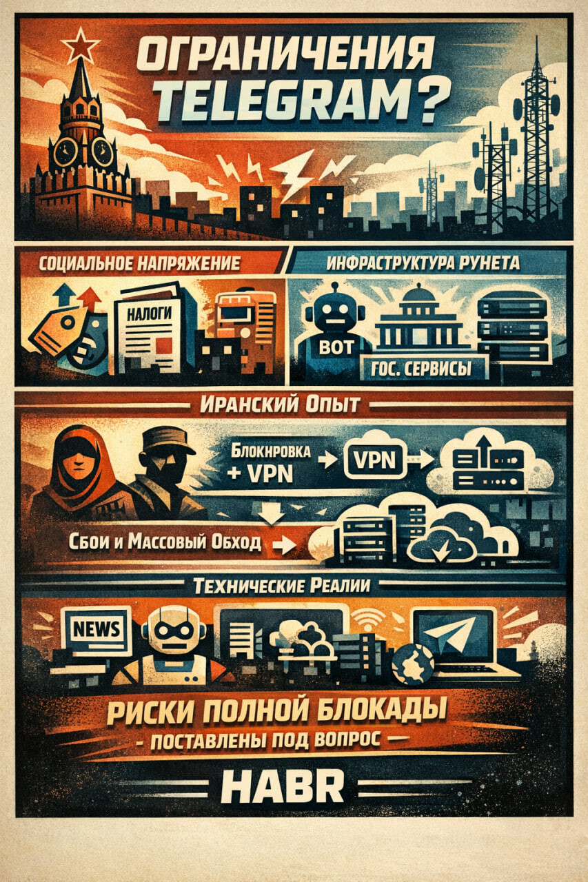 #Telegram #Рунет #ИнтернетРегулирование #ЦифроваяИнфраструктура #VPN #Блокировки #ДиджиталПолитика #ИнформационнаяБезопасность #Киберполитика #ИранскийОпыт #СетевыеТехнологии #ИнтернетСвобода #DigitalRights #TechPolicy #HabrStyle #ИнфраструктураИнтернета #Мессенджеры #Киберреальность