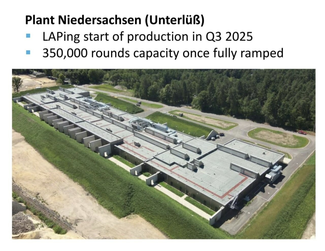 Согласно графику, новое предприятие в Нижней Саксонии после полной раскачки выйдет на проектную мощность в 350 000 выстрелов в год.