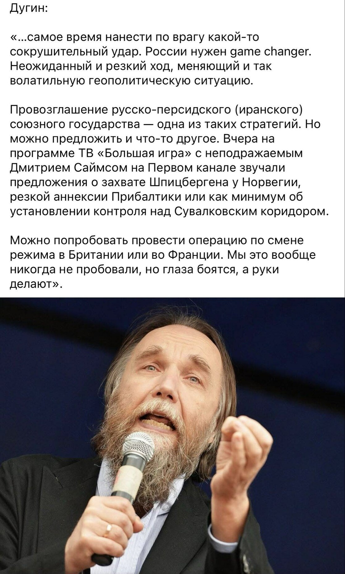 Из Каракаса таки успели эвакуировать чемодан с белым порошком, как я погляжу. Вчера, на программе "большая игра писюном", ладимладимыч озорно играл писюном шойгу при помощи пальцев и языка. Но поймал всё равно жопой. Потому что всё остальное растёт из неё, как уши из чебурашки. И ею же всё заканчивается!! Кому, как не выдающемуся философу современности это знать?!! Дуализьм! Эка закавыка!! Накатим. 🤣