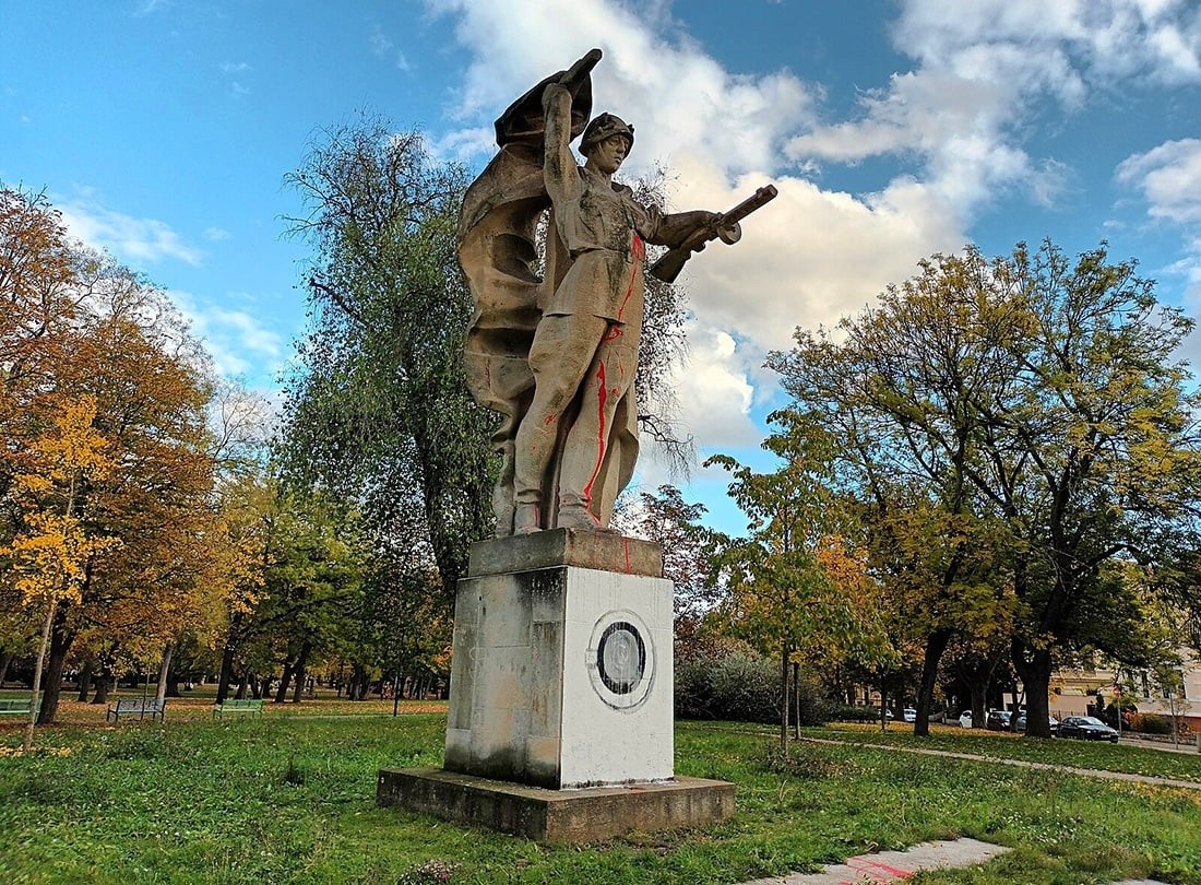 In the Czech Republic, an unknown turned the pedestal of the monument to the Red Army into a washing machine.