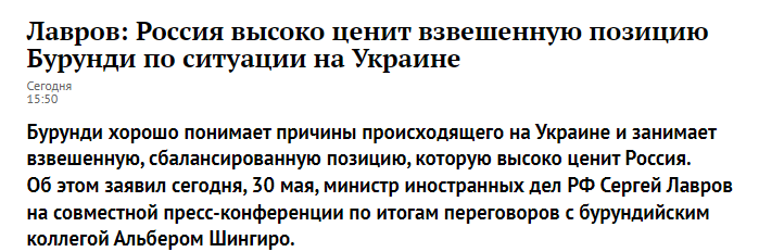 "Россия высоко ценит позицию Бурунди..."