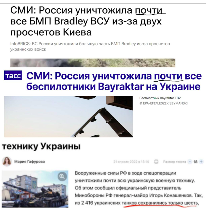 Ну, например, о том, что люди, которые писали о заградотрядах Азова или Правого Сектора позади ВСУ, реально сделали те самые заградотряды из кадыровцев за спинами собственных срочников.