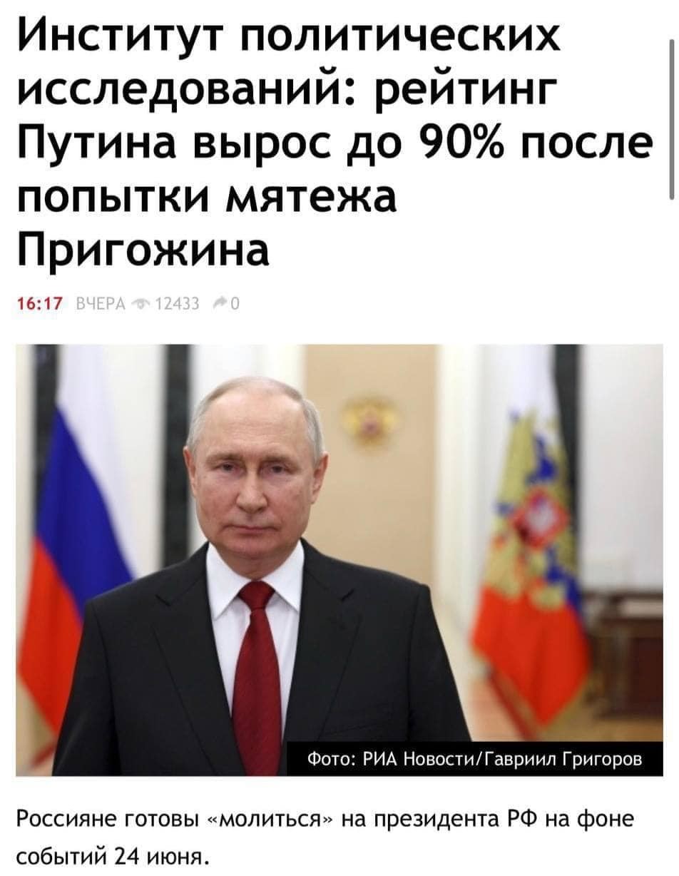 Было чудно видно, как эти 90% поддерживали хуйло во время мятежа. Прям толпы выходили на улицы, чтобы не даться пригожину. А вот мухи знают, кто в доме хозяин. 😉