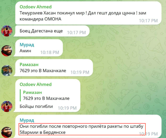 В том же штабе 58-й армии в Бердянске укокошили и замкомандира ОМОНа Ингушетии. Выходца из Сев. Осетии Темурзиева Хасана.