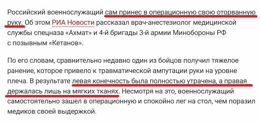 Видимо уже скоро какой-нибудь рабсеянский пропагандон завернет одну из офигительных историй прямо по классику: «Когда ему снесло голову, она ещё некоторое время катилась и кричала: «Долг спеши, солдат, скорей исполнить свой, даже если смерть витает над тобой!»»