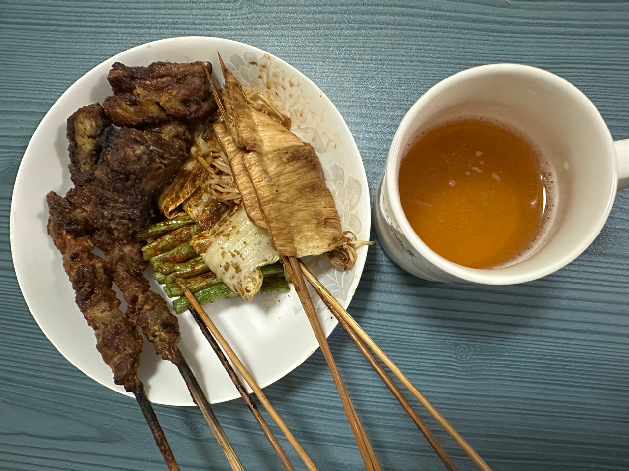 @coldwalnut 来来来,肉都给你,今天的烤菜不行,估计换师傅了,不要吃了!