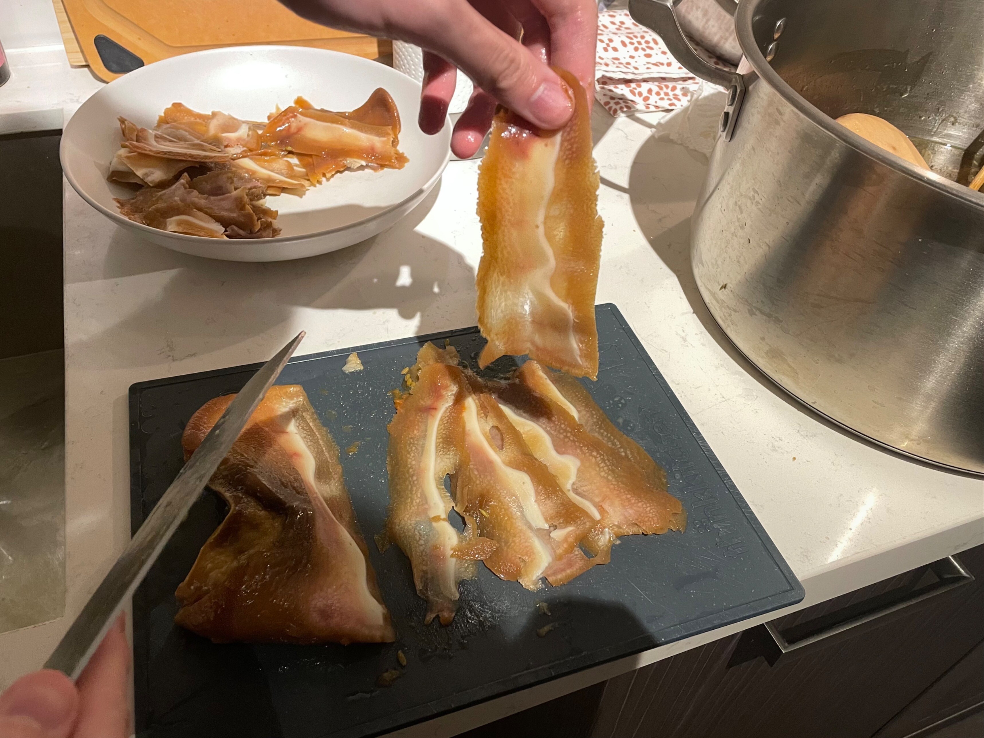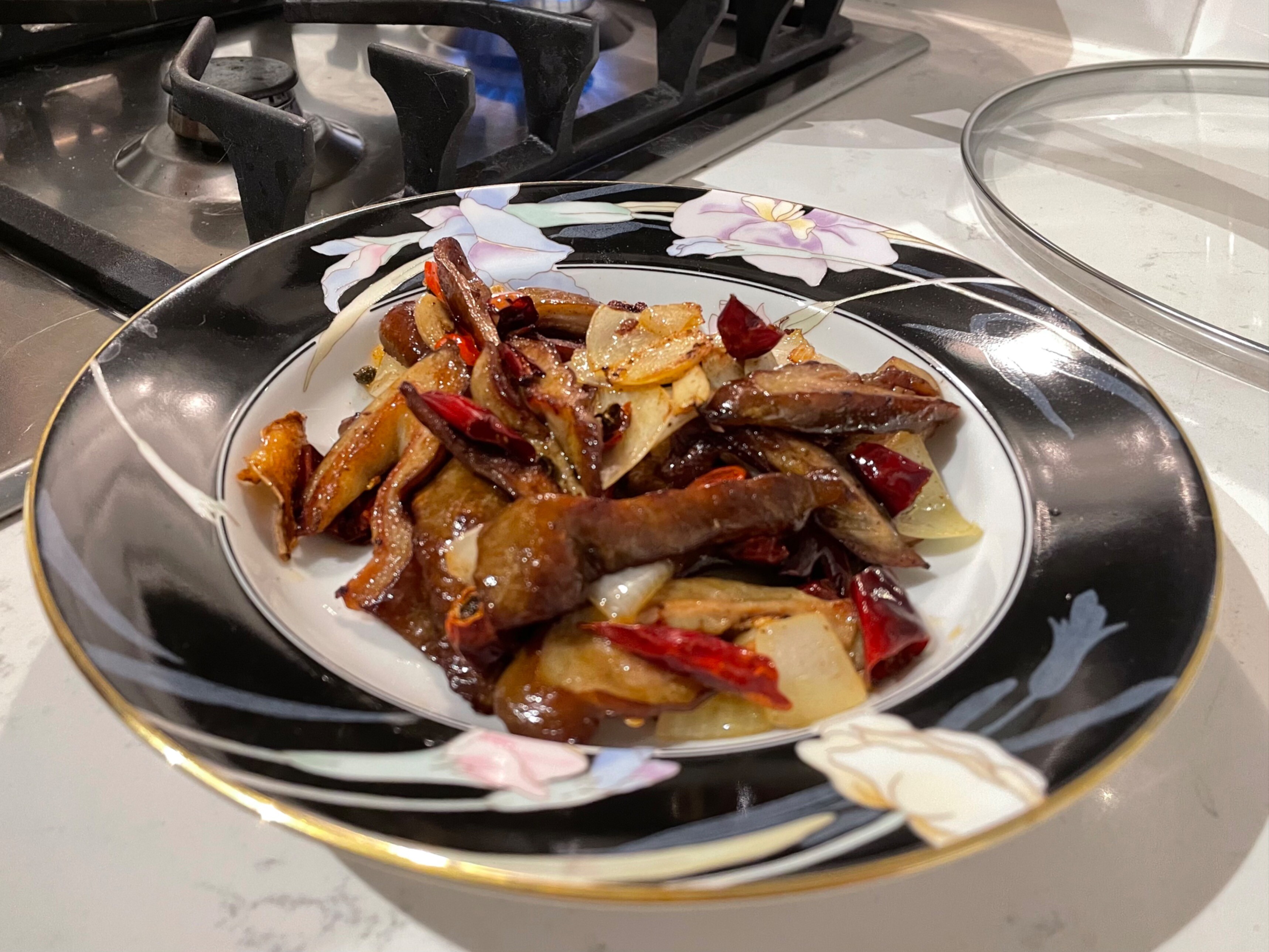 前两天卤的猪耳猪肝藕片卤肥肠,卤料少了白芷和别的什么忘了味道就总是少了点啥的感觉,切了一截卤肥肠干煸,白切文昌鸡,另买了一只乌骨鸡炖汤但品质比之前差太多有冰冻肉鸡质感,若干主要材料里只有黄冰糖杏干还擦边在的三无三炮台
