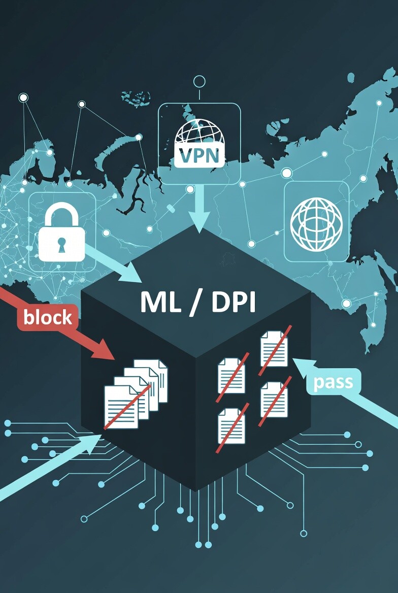 Акцент на поведенческий анализ шифрованного трафика, обфускацию и throttling. В 2025 году заблокированы сотни VPN, ИИ здесь — ускоритель, а не перелом.