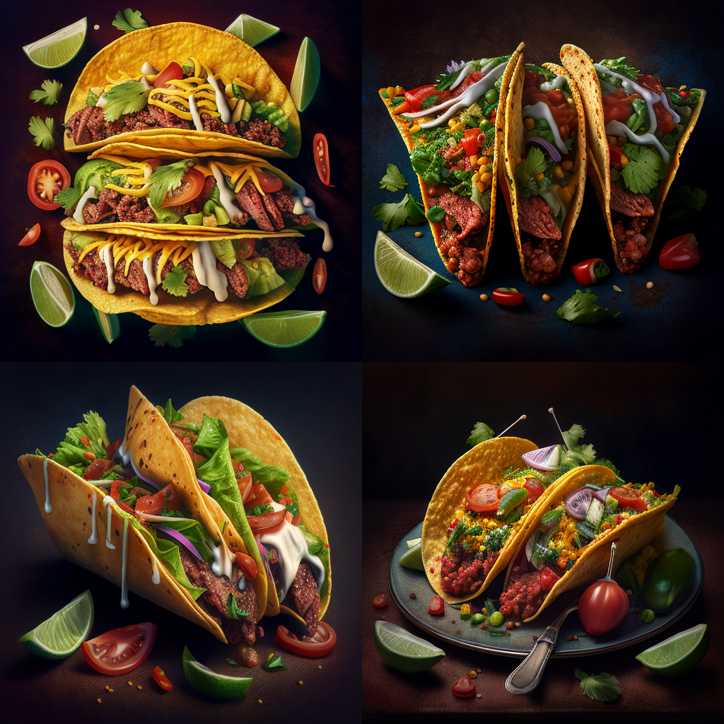 My daughter wants beef tacos for lunch, so I asked MidJourney for help.