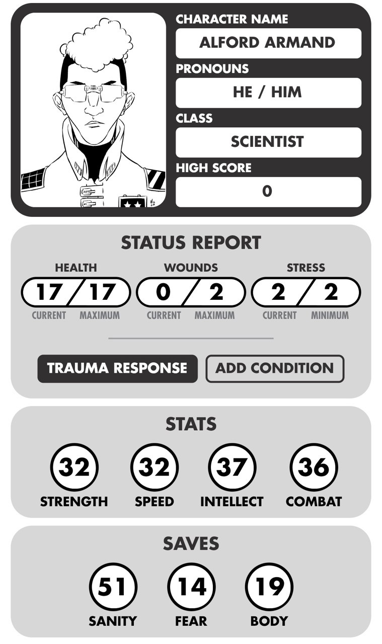 Thanks to the just-released Mothership Companion app, I have a new Mothership character!