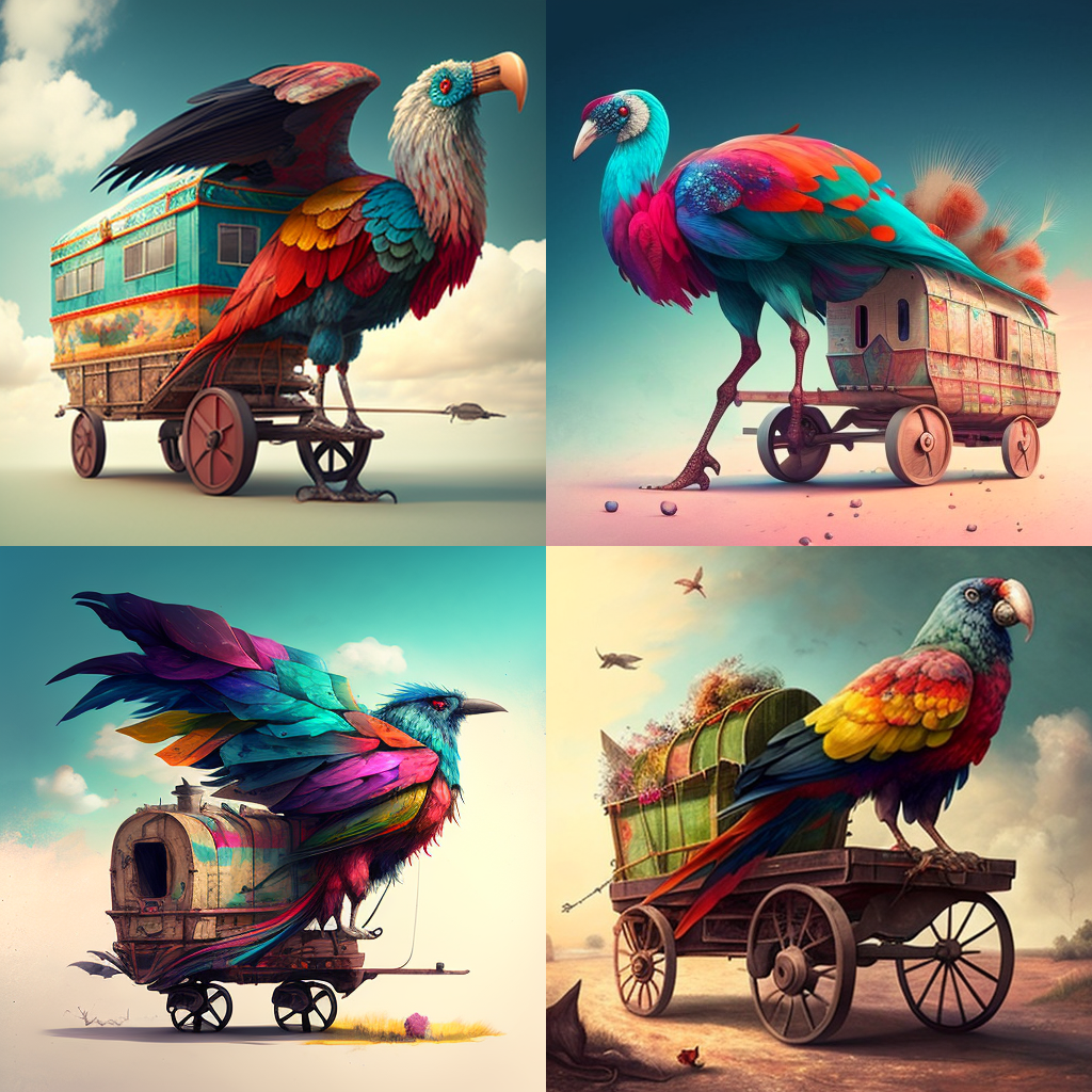 As usual, these were generated with the MidJourney v4 model, and the complete prompt text is in the image description.