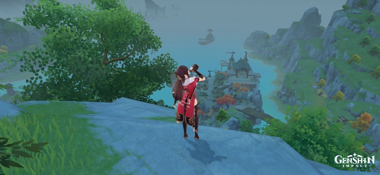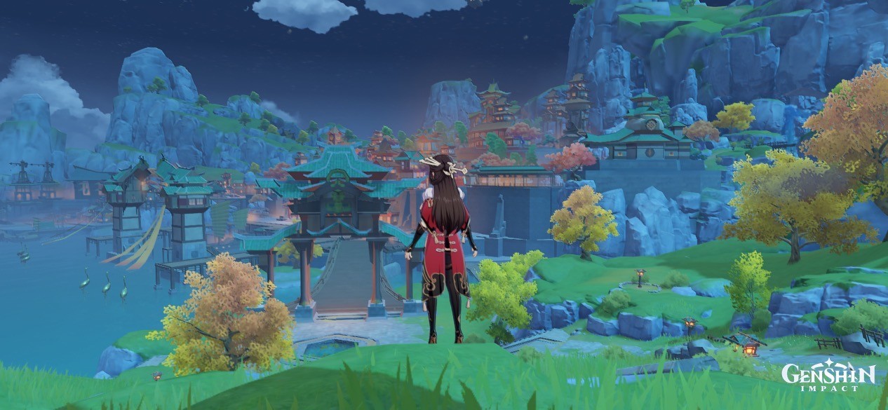 The first is from the Inazuma region I recently unlocked, which is based on Japan. The others are a nice set of three nearly-identical images from three times of day in the same spot in Liyue, which is based on China.