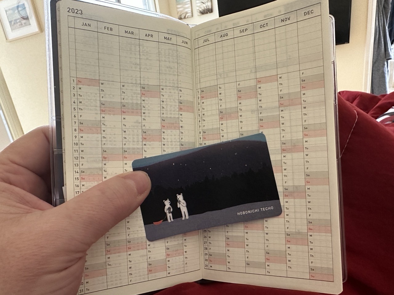 This Hobonichi Techo 2023 notebook is where I plan to note my #dungeon23 progress in the coming year. I hope.