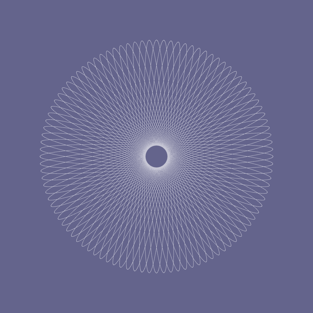 Your basic spirograph, but with two interesting experiments layered on.