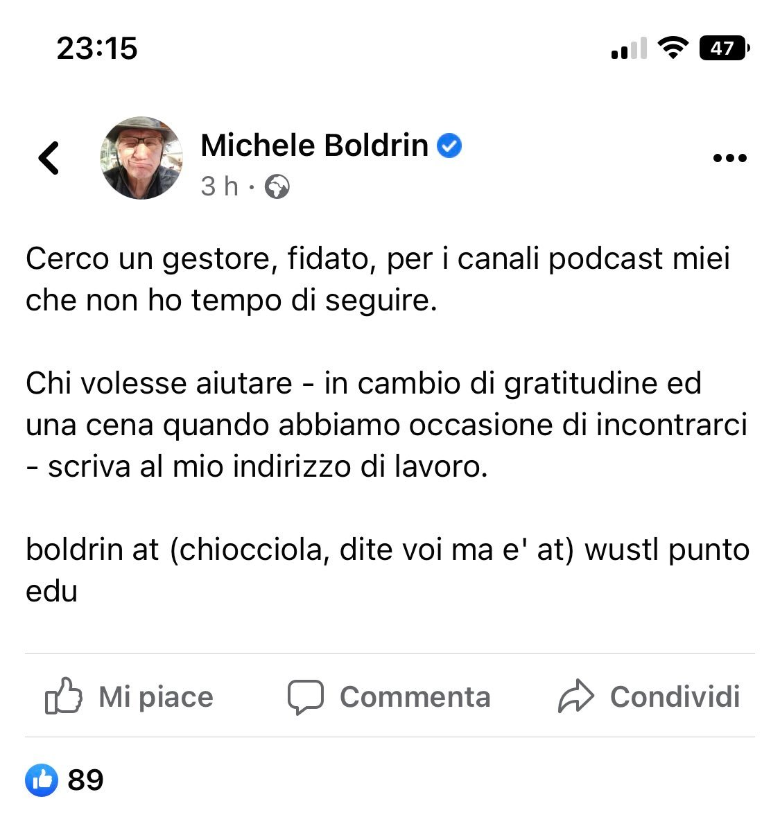 Cercasi minion che lavori gratis dopo aver abboccato alle mie scemenze al punto da volerle diffondere in rete come forma di volontariato, per celebrare i successi del libero mercato e del lavoro flessibile. Citofonare Boldrin.