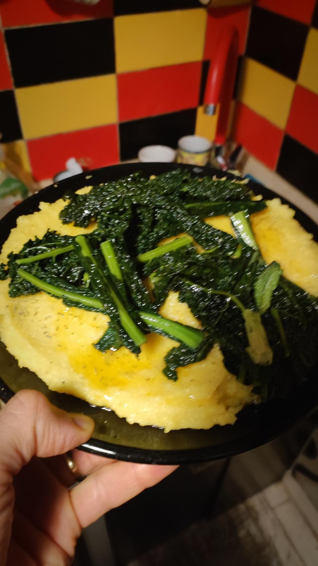 Come la pizza puoi metterci sopra qualsiasi cosa e farla sempre diversa. Qui per esempio l'altra sera ci avevo messo giusto un filo di un olio di lusso aromatizzo all'aglio e al peperoncino che ho ricevuto a Natale, e poi cavolo nero spadellato alla buona. Oh, regà, let me tell you, buonissimo 👍🤤 #vegan #vegano
