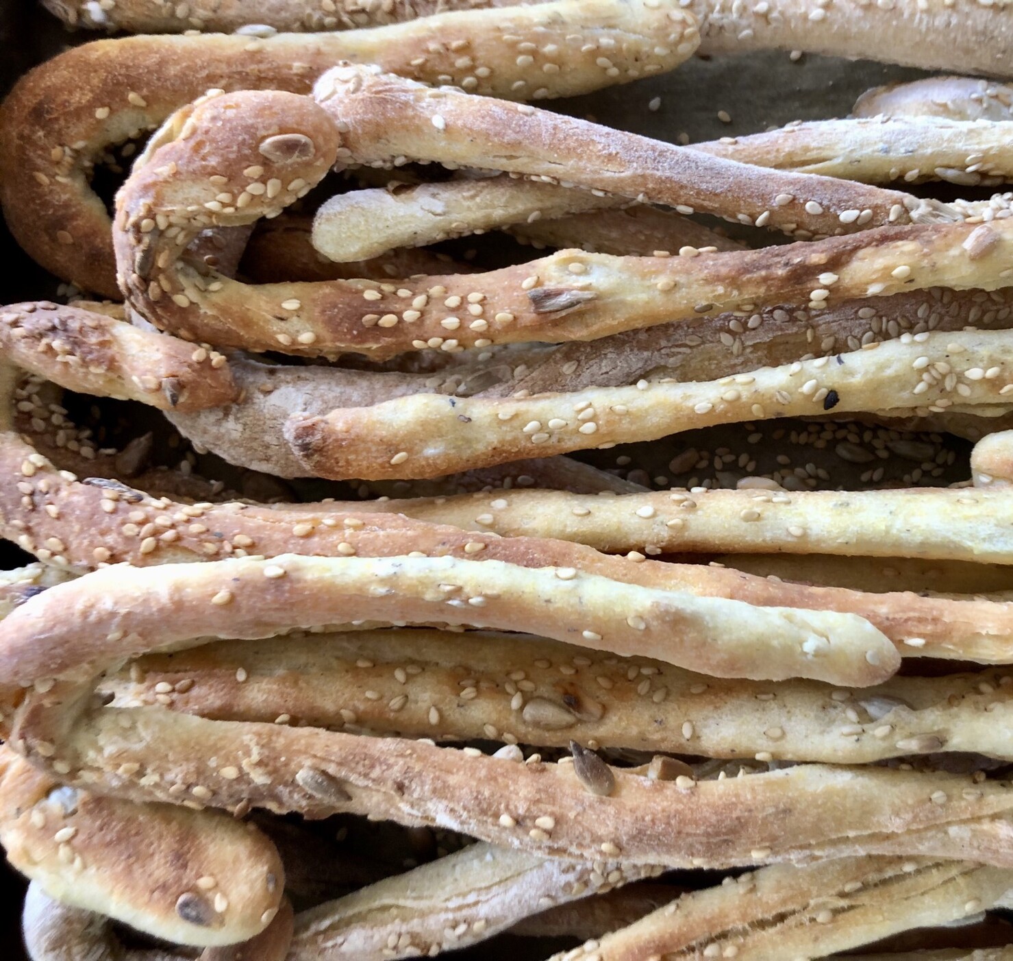 A manico d'ombrello per facilitarne l'avvolgimento col prociutto crudo :)