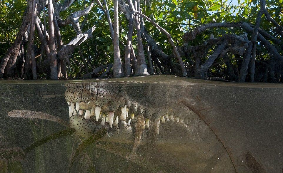 "12 ft long cuban saltwater crocodile stumbled upon while snorkeling"