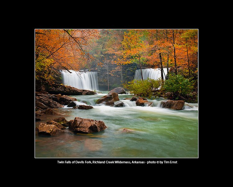 Twin Falls of Devils Fork, Richland Creek Wilderness, Arkansas.