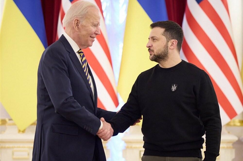 U.S. President Joe Biden and President Volodymyr Zelensky in central Kyiv on Feb. 20.