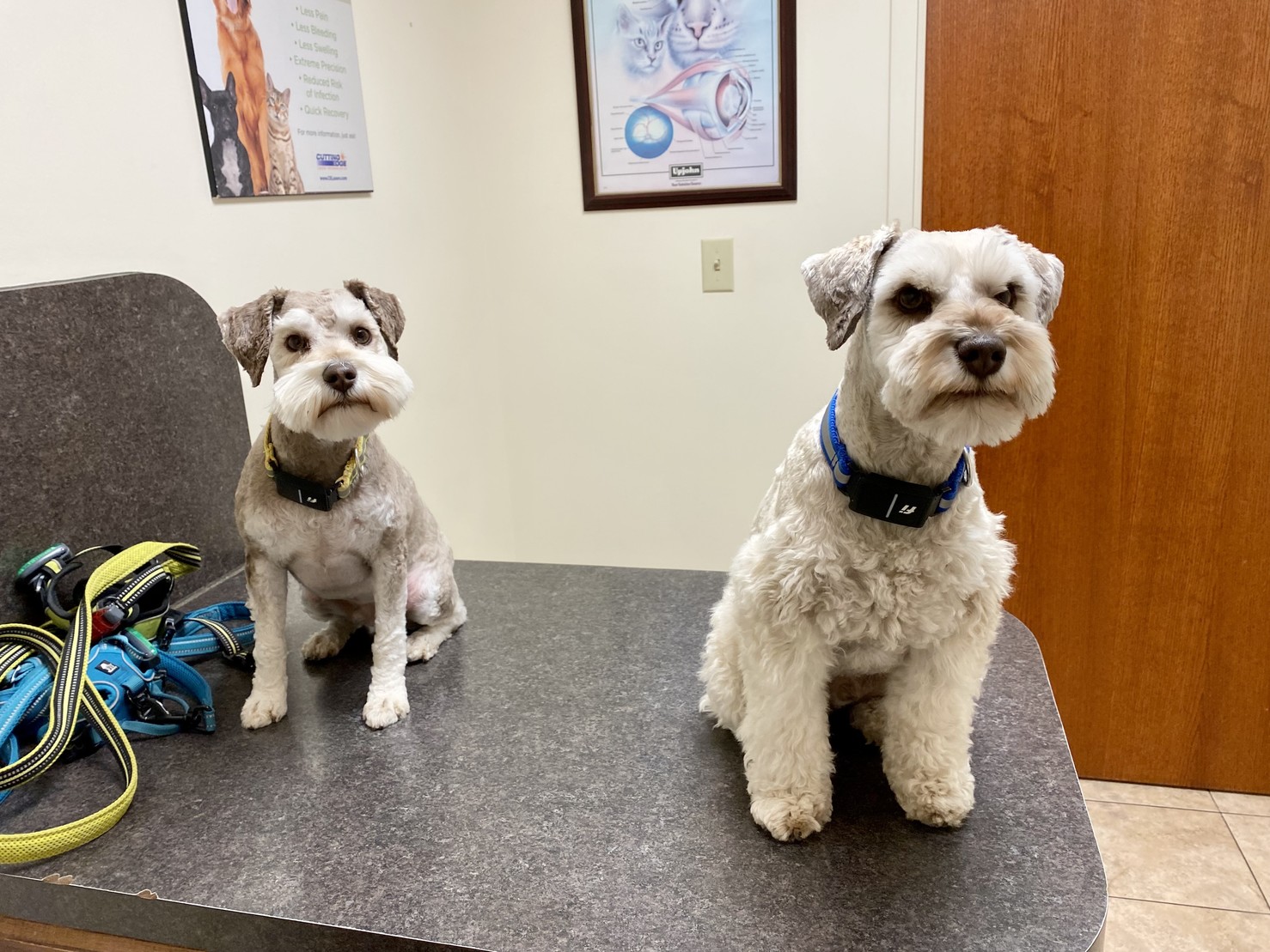 Teller & Penn checkup at the vets. Vaccinations and good exam.
