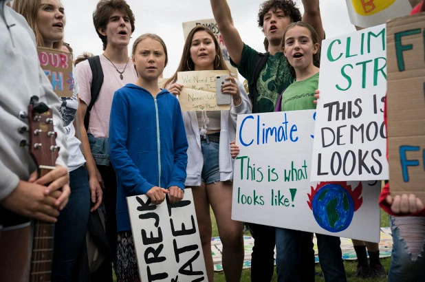 I wonder how much that big fat iPhone that one kid's holding contributes to "climate change"