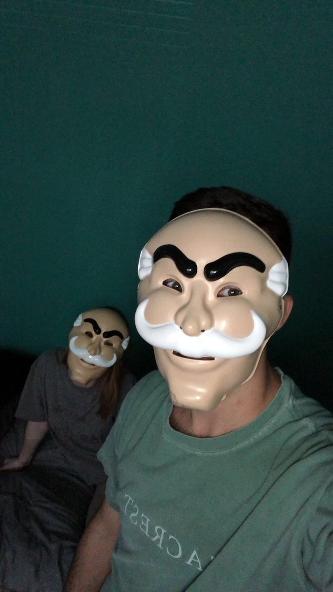 @whoismrrobot#WeArefsociety This will be me at 9 pm tonight minus the mask. Thanks to my hub for the early Christmas present, the#Fsociety blanket to add to my#MrRobot gear. And thank you to the show for all the generous gifts you’ve sent me. Be seeing you, friend. pic.twitter.com/jUJIYUKvvp