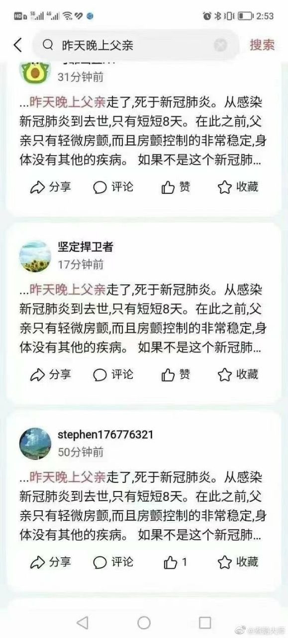 以 #昨天晚上父亲走了 为hashtag的文案在中国大陆社交平台上批量复制令人匪夷所思。