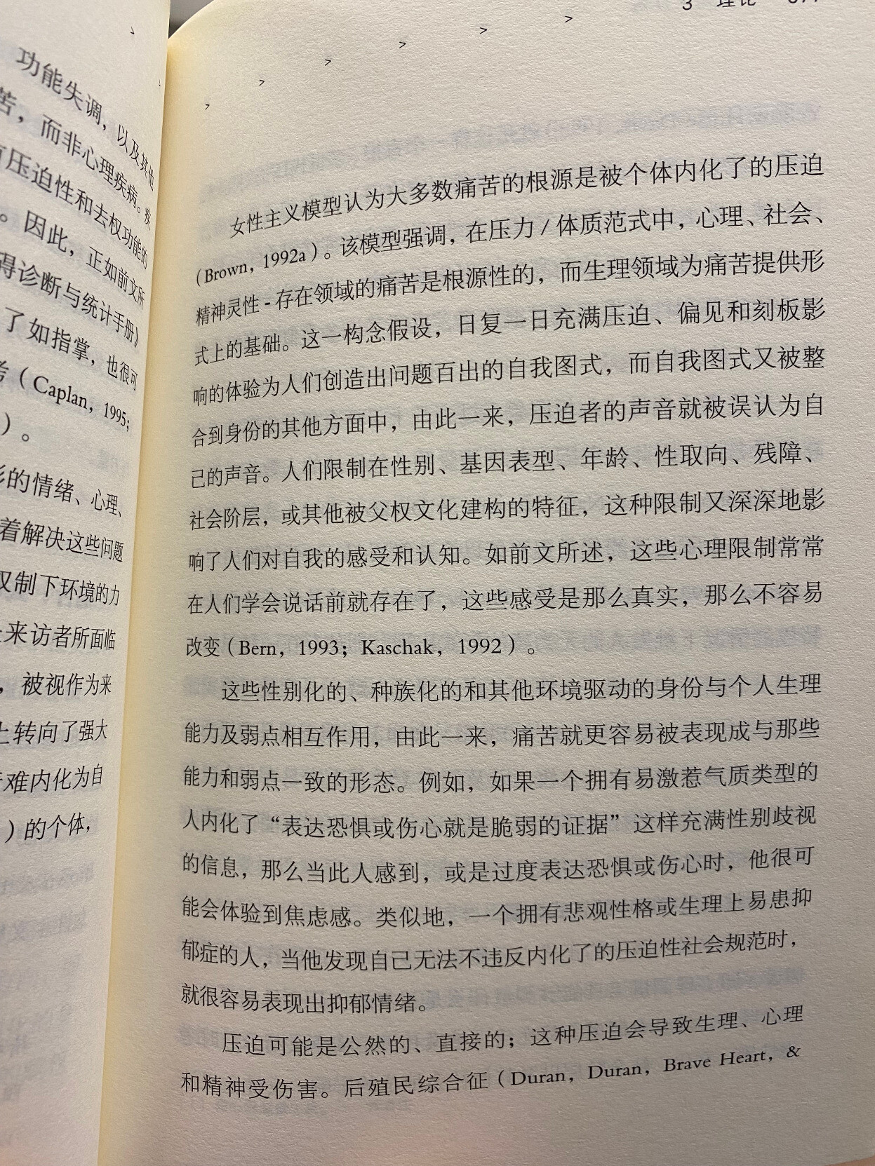 看完这本感觉又打开了新的大门,喜欢书中这些治疗师对某些社会议题的敏感性,并基于此不断吸纳新的实践和理论经验。
