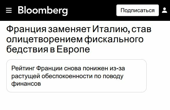 "Франция заменяет Италию, став олицетворением фискального бедствия в Европе".