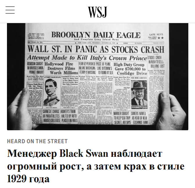 "Менеджер Black Swan наблюдает огромный рост, а затем крах в стиле 1929 года".