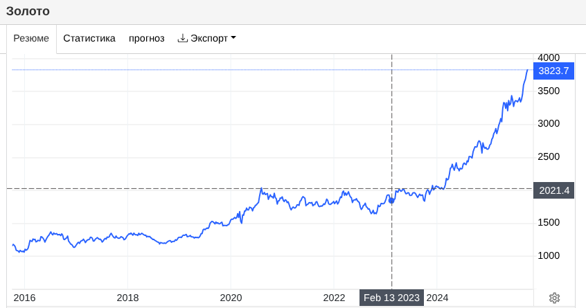 Интересно, сто с 2024 г темп роста цены золота заметно опережают и темпы девальвации доллара относительно других т.н. твердых валют и инфляцию.