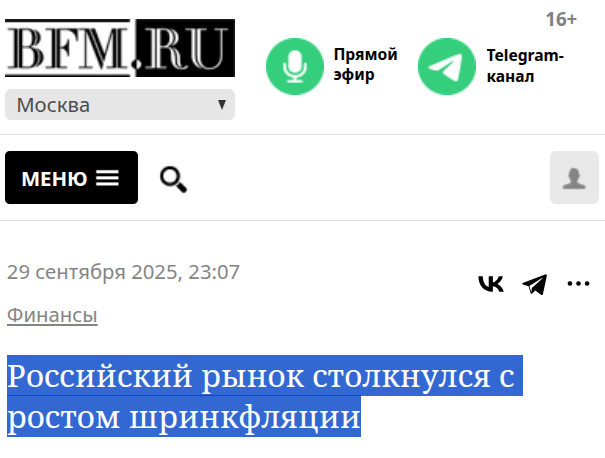 Последние пару кварталов (1Q2025 и 2Q2025) темпы роста ВВП РФ и без того были низкими - 1,4% и 1,1% соответственно.