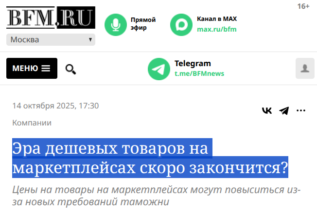 "Цены на товары на маркетплейсах могут повыситься из-за новых требований таможни".