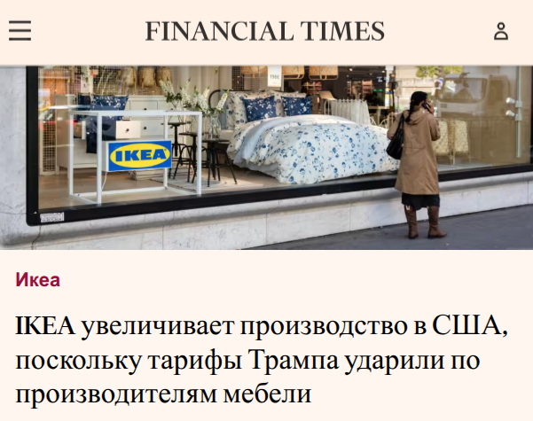 "IKEA увеличивает производство в США, поскольку тарифы Трампа ударили по производителям мебели".