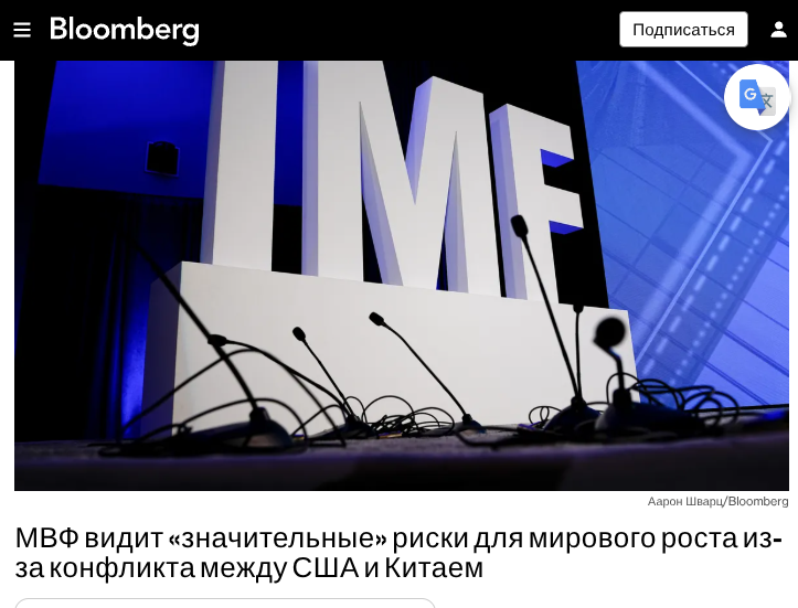 "МВФ видит «значительные» риски для мирового роста из-за конфликта между США и Китаем".