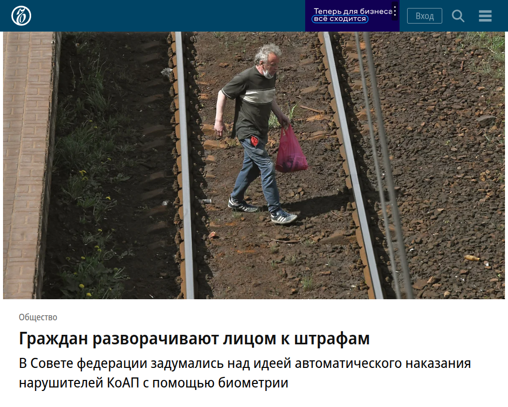 Для этого предлагается использовать данные с камер и программы распознавания лиц, работающие в связке с базами биометрических данных. Новый инструмент контроля сможет применяться, в частности, для штрафов за переход железнодорожных путей в неположенном месте. Конкретного законопроекта еще нет, концептуально его готово поддержать Минцифры.