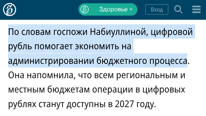 "По словам госпожи Набиуллиной, цифровой рубль помогает экономить на администрировании бюджетного процесса".