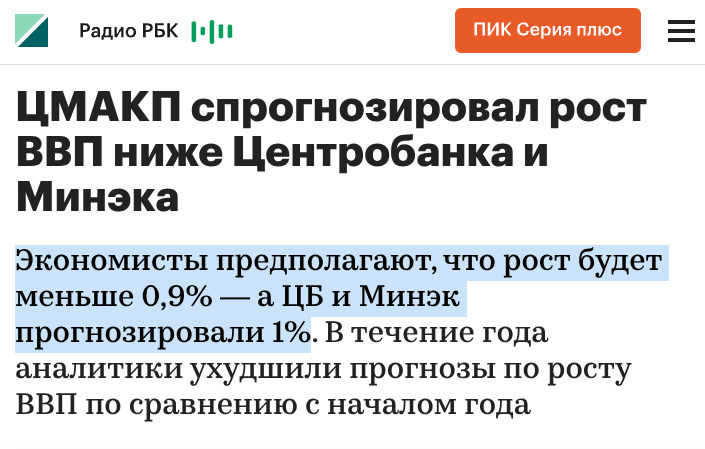 Экономисты предполагают, что рост будет меньше 0,9% — а ЦБ и Минэк прогнозировали 1%".