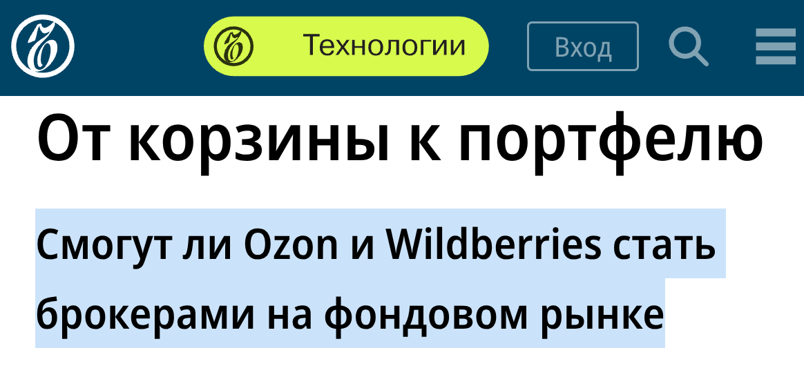 "Крупнейшие российские маркетплейсы Ozon и Wildberries готовят запуск инвестиционных сервисов, а также оформление брокерских лицензий.