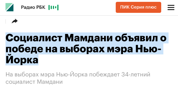 "Социалист Мамдани объявил о победе на выборах мэра Нью-Йорка".