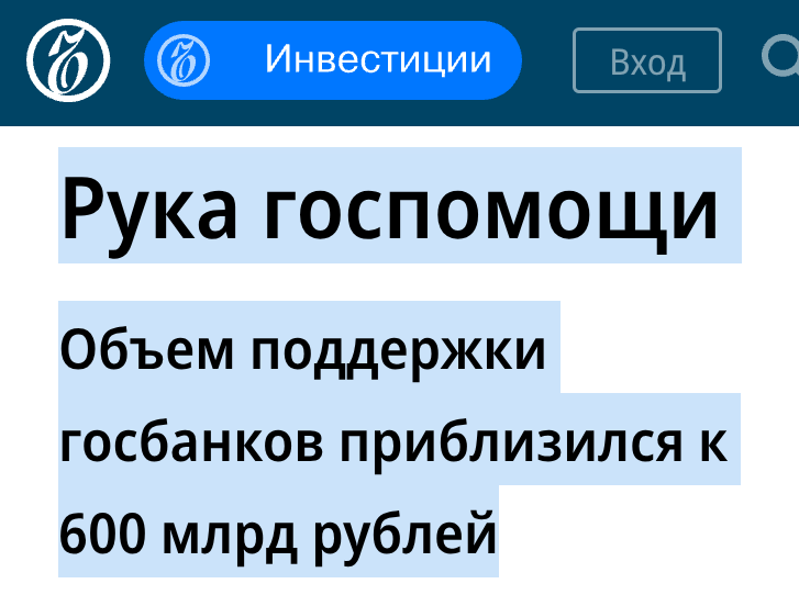 Рука госпомощи. Объем поддержки госбанков приблизился к 600 млрд рублей".