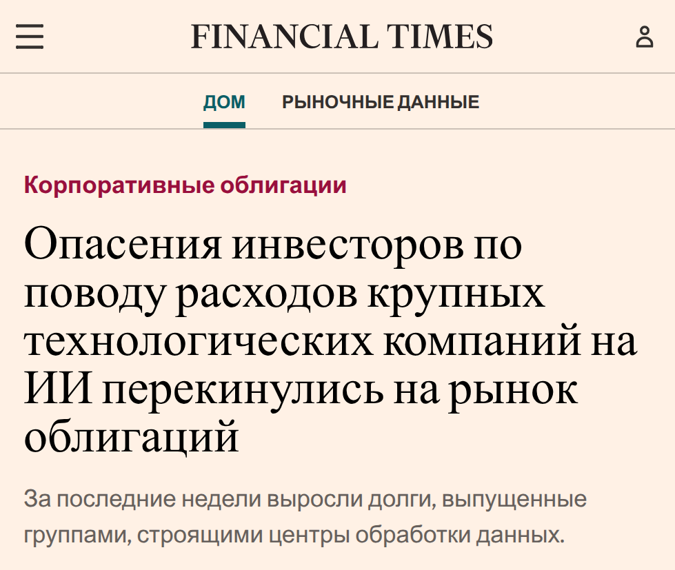 "Опасения инвесторов по поводу расходов крупных технологических компаний на ИИ перекинулись на рынок облигаций.