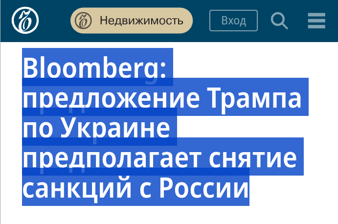 "Bloomberg: предложение Трампа по Украине предполагает снятие санкций с России".