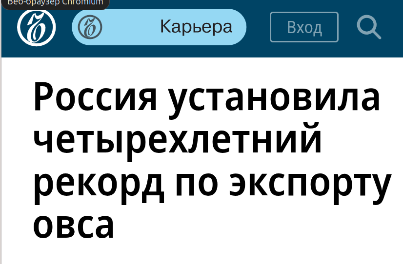 "Россия установила четырехлетний рекорд по экспорту овса".