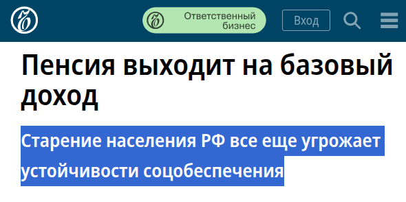 "Как отмечается в работе, при росте трансфертов, возможно, будет оправдан частичный отказ РФ от страховой пенсионной модели и переход к схеме базового пенсионного дохода как части пенсии, не зависящей от суммы уплаченных страховых взносов".
