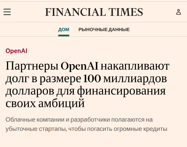 "Партнеры OpenAI накапливают долг в размере 100 миллиардов долларов для финансирования своих амбиций"
