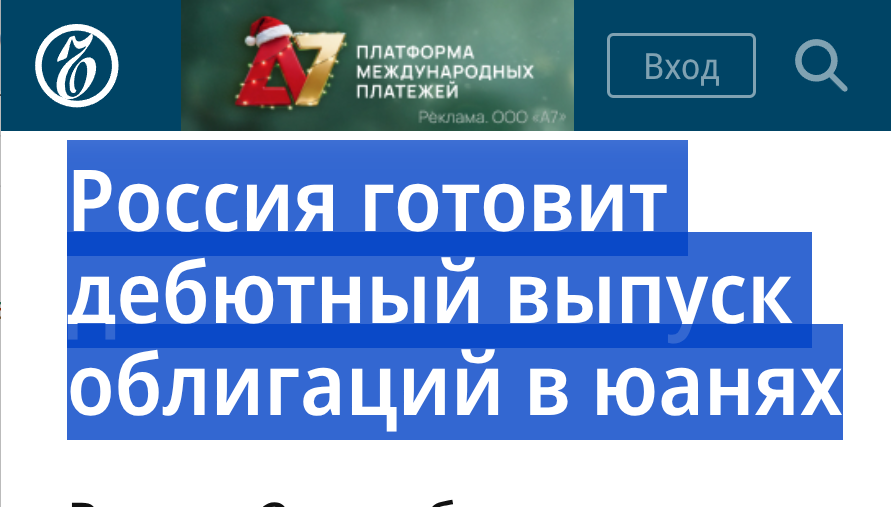 "Россия готовит дебютный выпуск облигаций в юанях.
