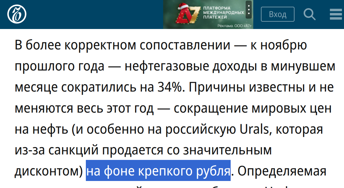 Причины известны и не меняются весь этот год — сокращение мировых цен на нефть (и особенно на российскую Urals, которая из-за санкций продается со значительным дисконтом) на фоне крепкого рубля"