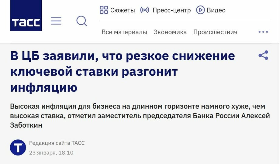 "В ЦБ заявили, что резкое снижение ключевой ставки разгонит инфляцию".